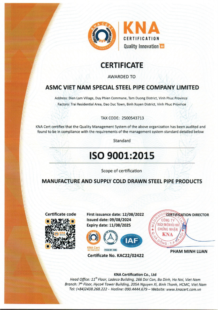 Công ty TNHH Ống thép đặc biệt ASMC chuyên sản xuất và cung cấp các loại ống thép : Ống thép hàn, ống kéo nguội chính xác, ống thép hợp kim,… Được sử dụng cho các ngành công nghiệp chế tạo và sản xuất có tiêu chuẩn cao như: Sản xuất linh kiện ô tô, xe máy, sản xuất thiết bị nông nghiệp, dụng cụ thể thao, sản xuất đóng tàu,…